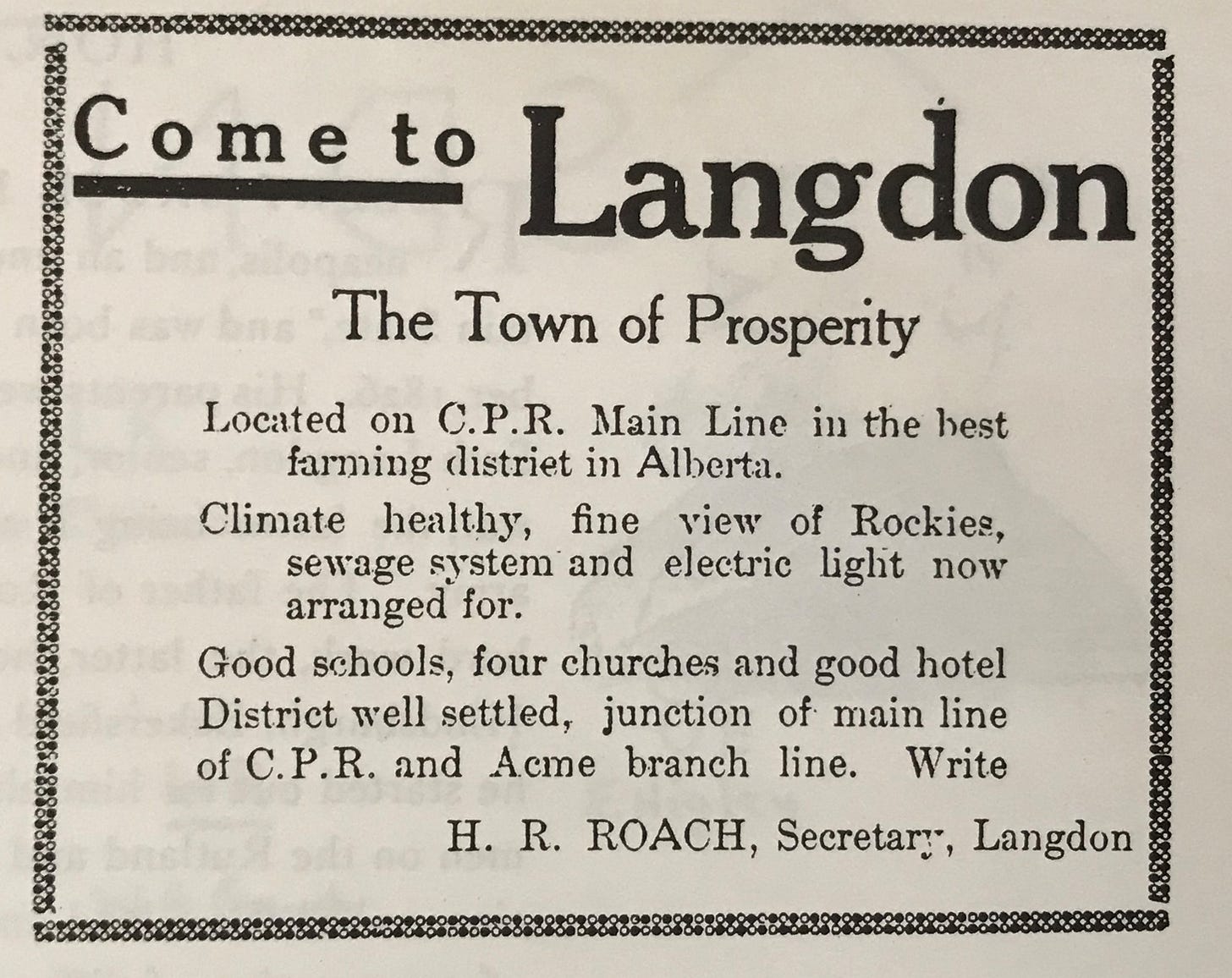 For those who remember Langdon, Alberta in the 1980s and 90s, the fact that it had ever been a flourishing settlement would understandably come as a revelation. The Canadian Pacific Railway arrived in 1883. That track crossed over the Blackfoot Trail, an ancient human pathway that had been used by the Siksika for centuries, connecting them with Blackfoot Crossing near present day Cluny. Later, the CPR Acme line connecting northern stops such as Irricana transformed Langdon into a major centre.