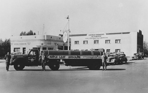 In 1932, the UFA Central Co-operative Association Limited, a subsidiary of UFA was formed to centralize the buying of farm supplies for the Locals. This was to separate commercial activities from the 1909 formed UFA which primarily functioned as an advocacy group.