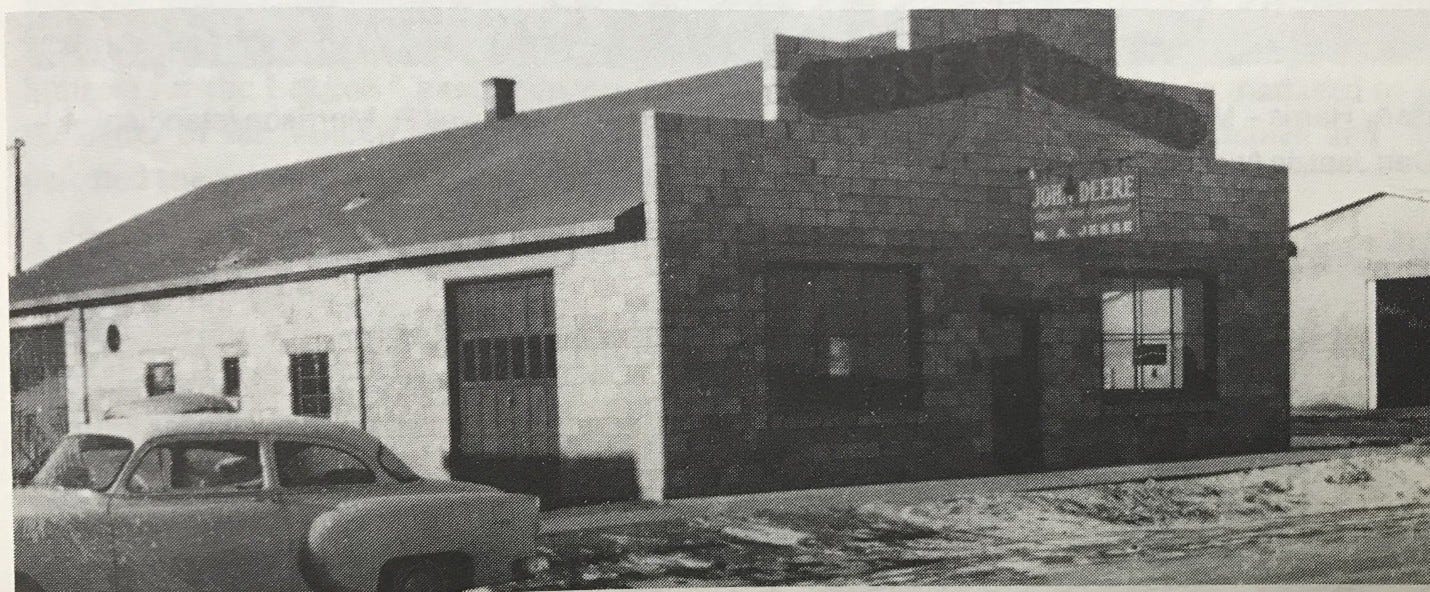 Massey-Harris farm equipment has been explored in previous articles in this series; you can read them here, here and here. Across the street from Morrisons was the competition. The Jesse family owned the John Deere business. The rival equipment that John Deere was selling during the 1940s and early 1950s included some of that company’s greatest hits, including the Model A and the Model D.