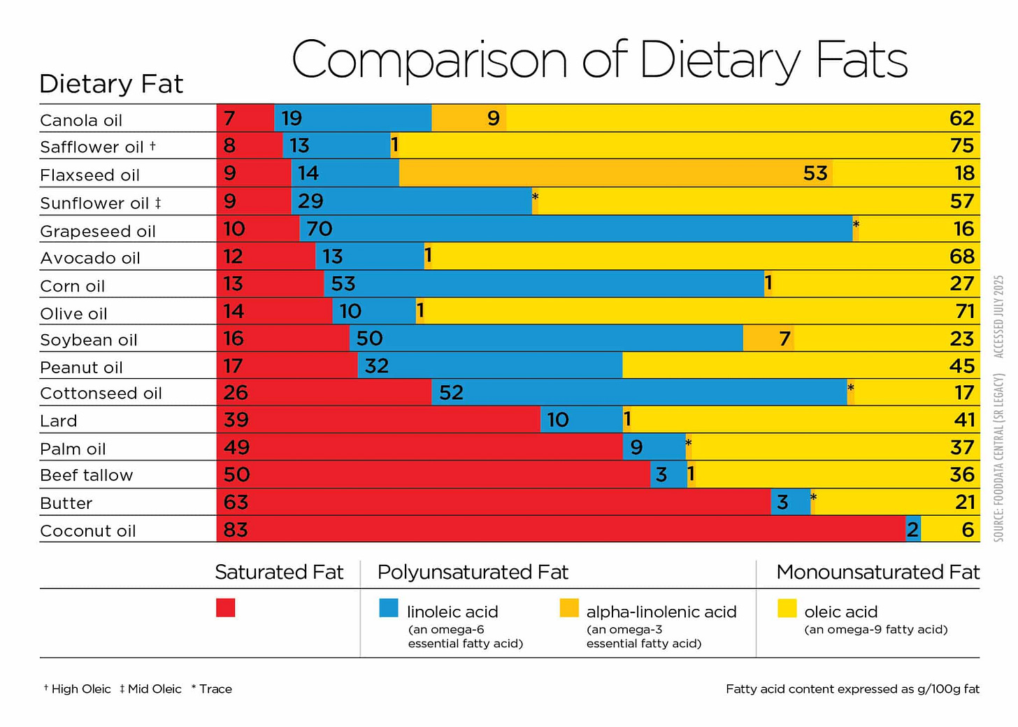From the outset scientists involved recognized that rapeseed could also be an edible oil source for Canada. At that time Canada imported 90% of its edible oil needs and some companies in the early 50s began to market the oil domestically. This new product in the edible market interested Canadian nutritionists who reported that lab animals fed rapeseed oil performed poorly under stress and had enlarged adrenal glands. Further lab animal studies reported additional nutritional problems suggesting that the fatty acid composition of rapeseed oil was the cause. Fatty acids are the building blocks of an oil and the fatty acid composition of an oil determines its utility, value and nutritional quality. For example, linolenic and linoleic acids are essential fatty acids for human nutrition. Rapeseed oil differs from other edible oils in containing a substantial amount of long carbon chain, monoenoic fatty acids, eicosenoic and erucic acid. Their nutritional value was questioned.