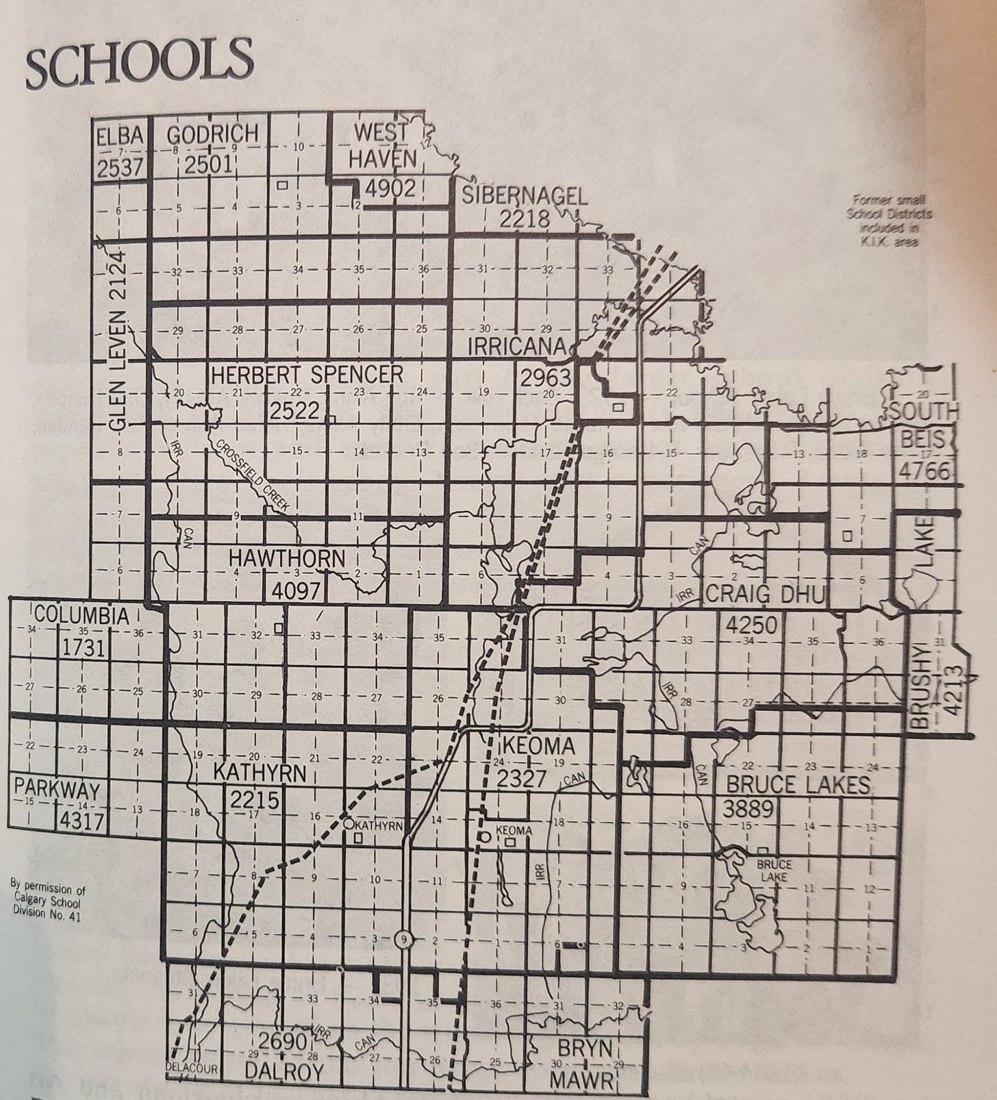 · The Herbert Spencer School, four miles west and one mile south of Irricana, was built in 1912.